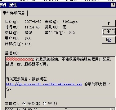 网友Q:一台 ISA 服务器为 AD 成员,之前 ISA 运行良好,最近 ISA 总报 RPC 错误,无法登录到 AD?