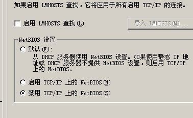 从上述错误中可以看到一些服务器因 NetBT 故障导致运行错误,运行"Services.msc"进入服务管理器检查并允许自动运行"TCP/IP NetBIOS helper"服务,之后发现问题依然存在。继续检查内网连接的网卡TCP/IP属性配置下“高级”-“WINS”-“NetBIOS 设置”,应确保内部网卡启用“默认”设置或“启用 TCP/IP 上的 NetBIOS”设置。