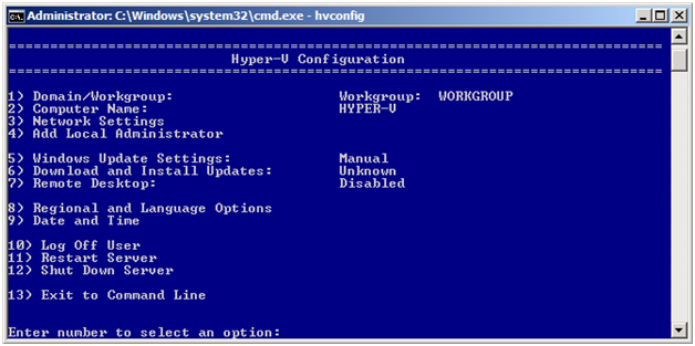 A: Hyper-V Server includes a minimal, easy to use command-line based UI for system configuration. This allows a user to easily configure system settings such as: