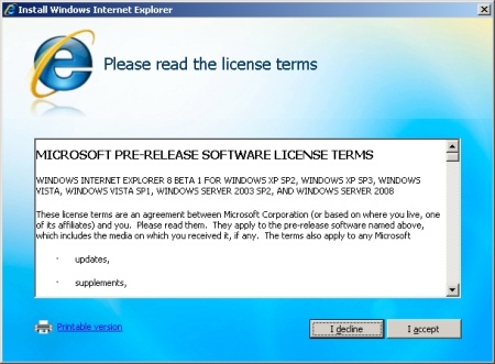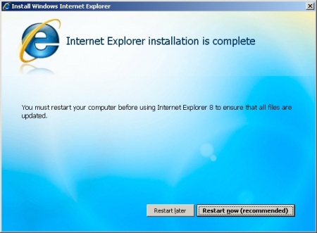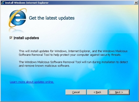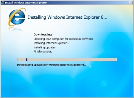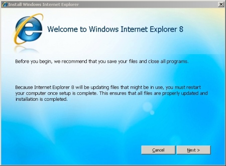 IE8 Beta1 的安装与 IE7 并无太大区别,一路下来基本上除了 Next 以外不需要人为的干预,整个安装过程耗时不短跟下载更新有一定的关系,其实要想加快安装速度最好的办法就是禁用网卡或干脆拔掉网线,呵呵!下面是 IE8 Beta1 安装时的截图,并没有像当时安装 IE7 时给人一种兴奋的感觉!