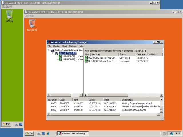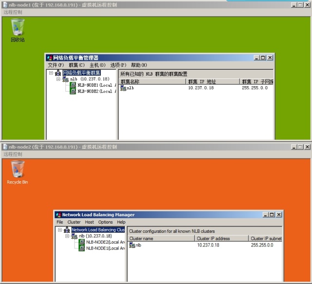 下面这幅图为两台节点上的 NLB 状态。接下来你可以分别在节点上安装 IIS 进行测试。