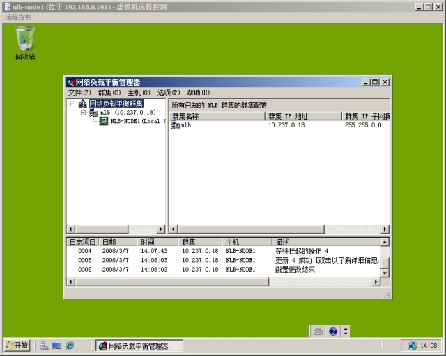 其他说明:由于是在虚拟环境下做测试,之前将各节点配置为单网卡多播模式的 NLB,不是很稳定,而且每次打开 NLB 管理器总是提示多播的警告,故后来改为双网卡单播测试正常!