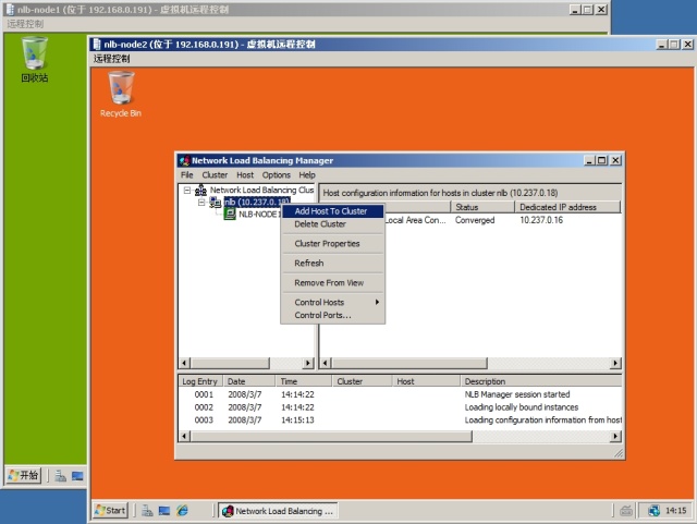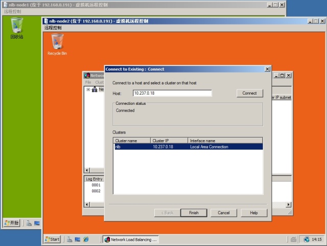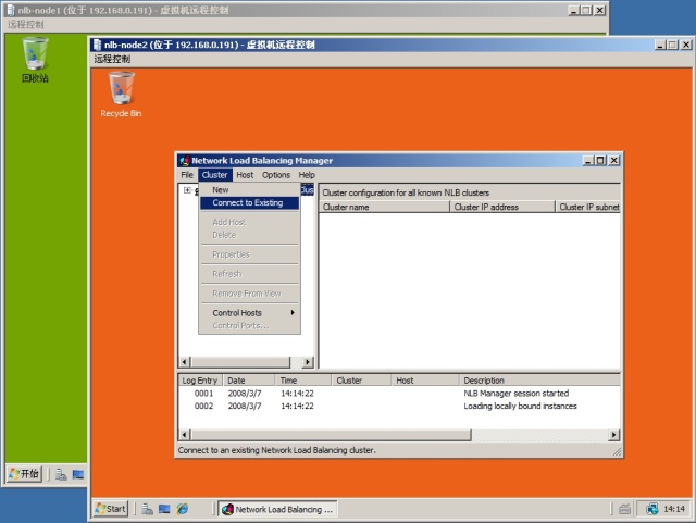完成了 NLB 群集的创建并添加了第一个节点后,现在登录到 NLB-Node2 上,同样打开 NLB 管理器,在菜单“群集”下选择“连接到现存的”,以连接到现有群集中!
